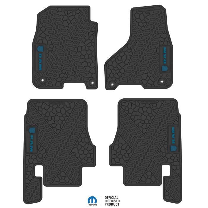 Flextread floor mats unique anti skid backing helps insure and improve skid and slip resistance and have safety securement devices both buttons and grommets included as original where applicable by year, make and model. Flextread floor mats help provide more then just protection. They also add value, fun, excitement and character to the interior of your vehicle. Making your interior look nice while satisfying your life style is a great option and the next generation in floormat design.
