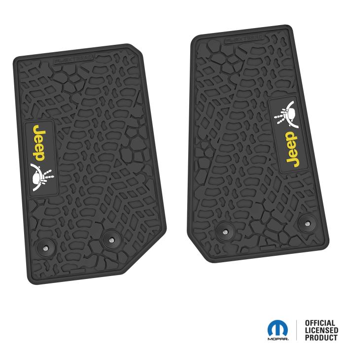 FlexTread 14-18 Jeep Wrangler JK 2Dr Floor Mats (2pc) w/ Jeep Wave w/ Wheel Logo NGTT04051