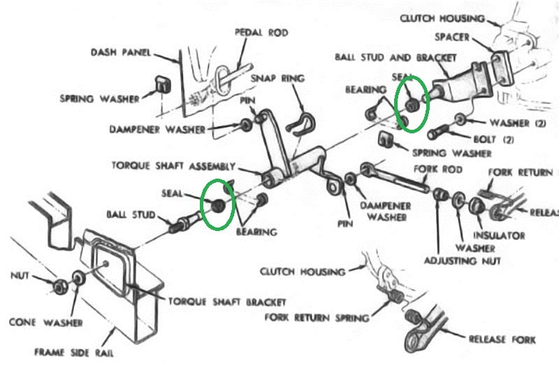 DMT Clutch rod torque shaft, Z bar seal 63-76 A, B & E Bodies.