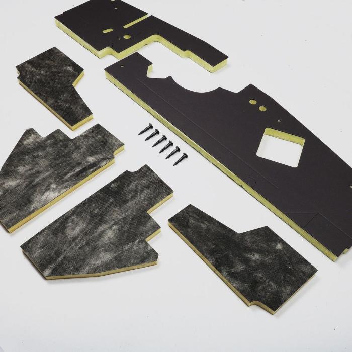 Heavy (.100") solid black cardboard with 1" yellow, "long fiber" fiberglass firewall insulation