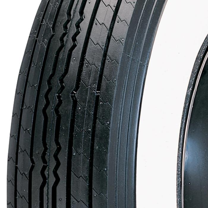 This product features a genuine wide whitewall sidewall style. This means that the bright white rubber is added directly to the tire sidewall during initial construction of the carcass, resulting in a truly integrated, high-quality product after vulcanization. Wide whitewall tires were a very popular choice from the 1930's through the end of the 1950's, and were eventually phased out of mainstream production by 1962. Originally, wide whitewall tires featured a bias ply construction, Coker Tire offers these tires in both original style bias ply and modern radial construction.
