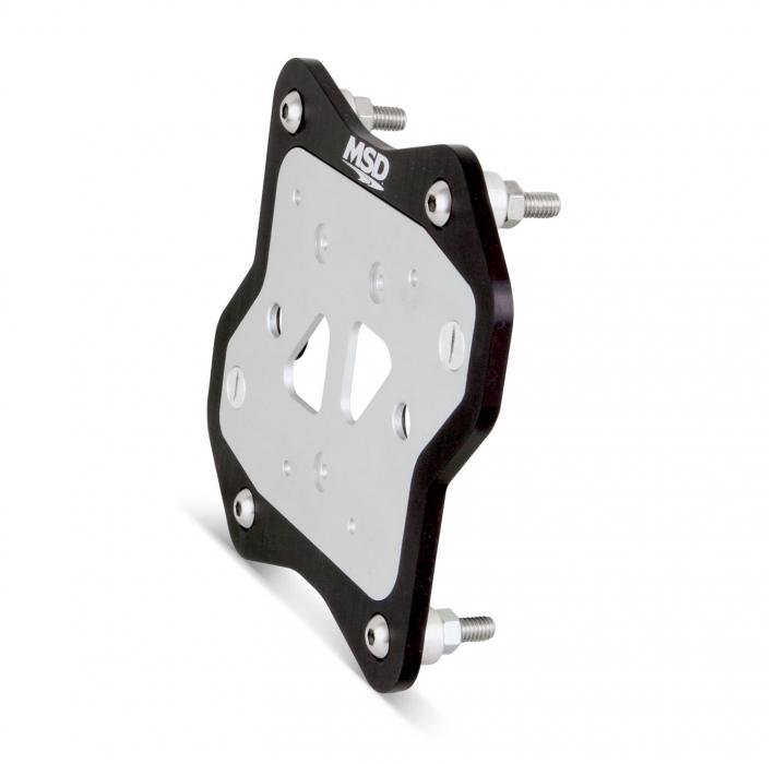 The MSD Bracket is made of a 2-piece design, the permanent mounted framework and the removable insert, via 2 Dzus fasteners. The brushed aluminum coil mounting brackets takes the guesswork out mounting your coils. This bracket is made of billet aluminum and 2- tone anodized for a great finish. Designed to work with MSD Blaster SS, and MSD 6, and 7-Series HVC-II Coils.