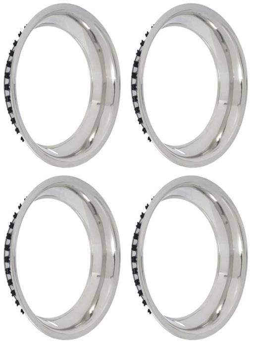 OER® Authorized reproduction of the original style 15" wheel trim ring designed for use on a variety of GM models with Rally Wheels. Each trim ring is manufactured in quality stainless steel for a long lasting quality appearance. Will install on original GM or reproduction Rally Wheels. Will fit many different applications from 1967-81 General Motors models that included the Rally wheel option. Fits 15" x 8" or 15" x 10" OEM and reproduction GM Rally wheels. Sold in sets of 4 trim rings.
