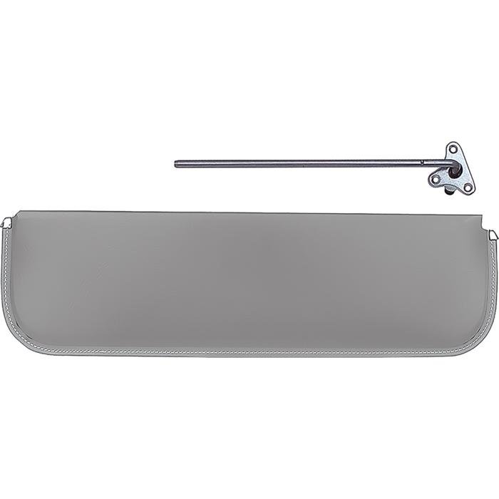 The original sun visors and brackets consisted of colored cardboard with a polished bracket and edging. Our replacement visors are exact reproductions of the originals and are shipped in protective boxes so they are not scratched or damaged in transit to you. Simply attach the bracket to the visor, and then to the headliner area and your ready. Fits right hand (passenger) side.
