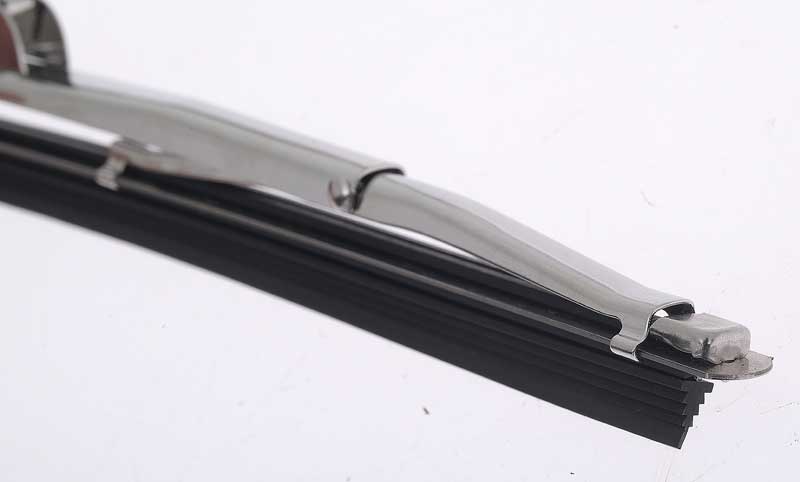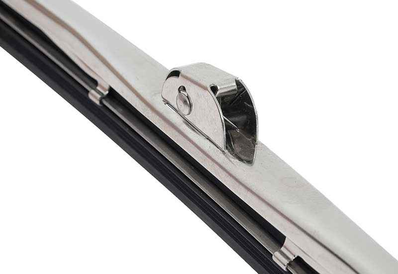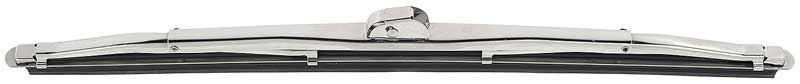 Reproduction windshield wiper blade for 1954-55 1st Series Chevrolet and GMC trucks, 1949-54 Chevrolet Full-Size Passenger Car models, and a wide range of other makes and models equipped with wrist-action style wiper arm connectors. Each polished stainless steel, triple-action blade is designed for use with snap-in or wrist-action wiper arms (sold separately). Features a polished stainless steel finish for beauty, durability, and superior corrosion resistance. High-grade rubber wiping edge delivers a streak-free wipe for clear visibility and safer driving. Measures 10-5/8" in length. Sold individually.