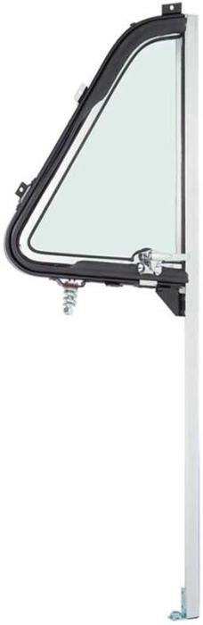 Reproduction of the original door vent window assembly designed for use with 1951-1955 Chevrolet and GMC truck models. Each glass assembly is manufactured to OE specifications replicating the original in quality, fitment, and design. This vent glass assembly features the black vertical door glass run channel with felt lining, chrome vent glass frame, clear window glass, glass weatherstrip, and the latch handle.