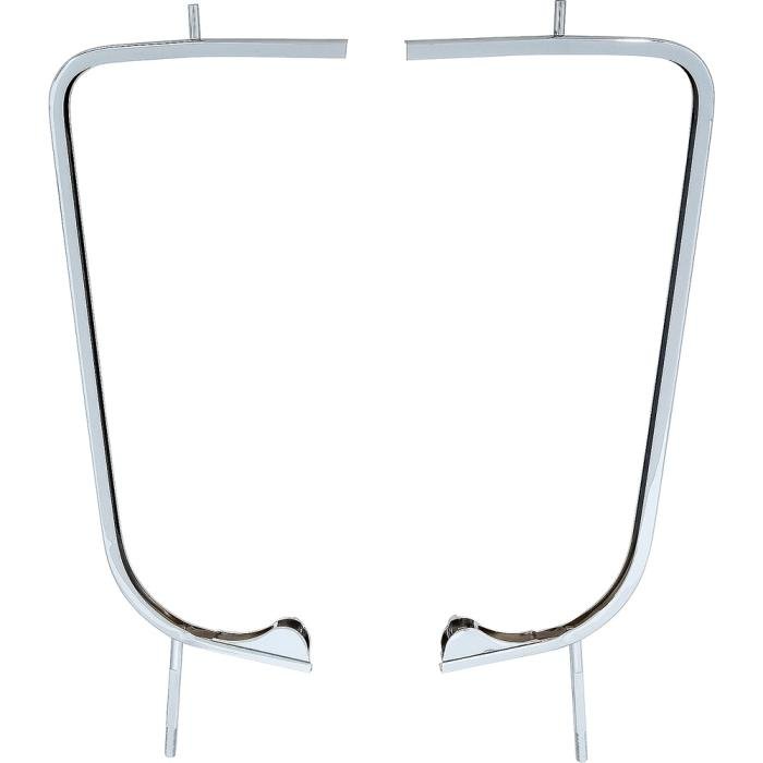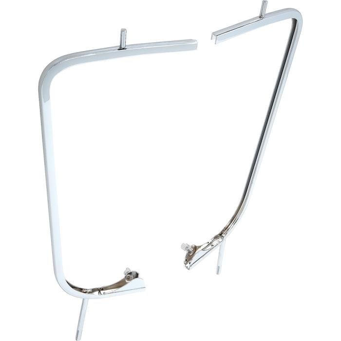 Reproduction of the original vent window glass frames for use with 1955-1959 Chevrolet & GMC pickup truck models. Each frame is manufactured to correct factory specifications rfeplicating the original in design, appearance, and fitment. Frame come in a finished brightly polished chrome plating. Includes RH and LH frames. Sold in pairs. NOTE: For use with 1955 2nd design (late production) models.
