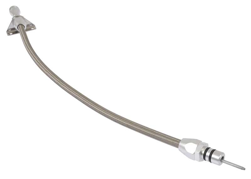You will have flexibility with this transmission dipstick designed for use with Chrysler A904 transmissions. This firewall mount dipstick features a flexible stainless steel braided cable, aluminum knob, and a fill tube.