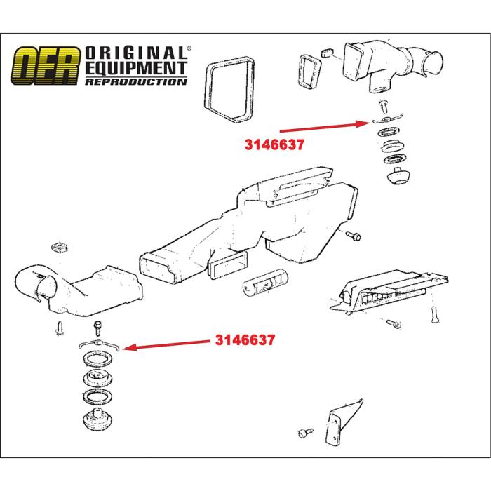 Reproduction spring retainer set used to hold the floor air outlet deflector or side grill area of the dash air vent outlet assembly on a wide variety of GM models. Manufactured in spring steel, as original. Sold in a pair. Use as required.