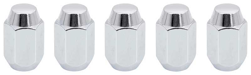 Chrome lug nut set for 1962-72 Dodge and Plymouth A-body Rallye wheels. These 1/2" lug nuts are manufactured to correct factory specifications and are LH thread. 5 piece set with washers. Use as required.