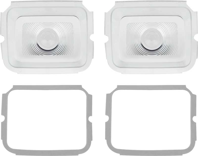 Reproduction of the original back up lamp lenses for 1964 Dodge Polara, and Polara 500 models. Each lens is manufactured in injection molded clear acrylic replicating the original lens for an authentic replacement. These back up lenses will replace the old, cracked, or missing originals exactly. Sold in pairs.