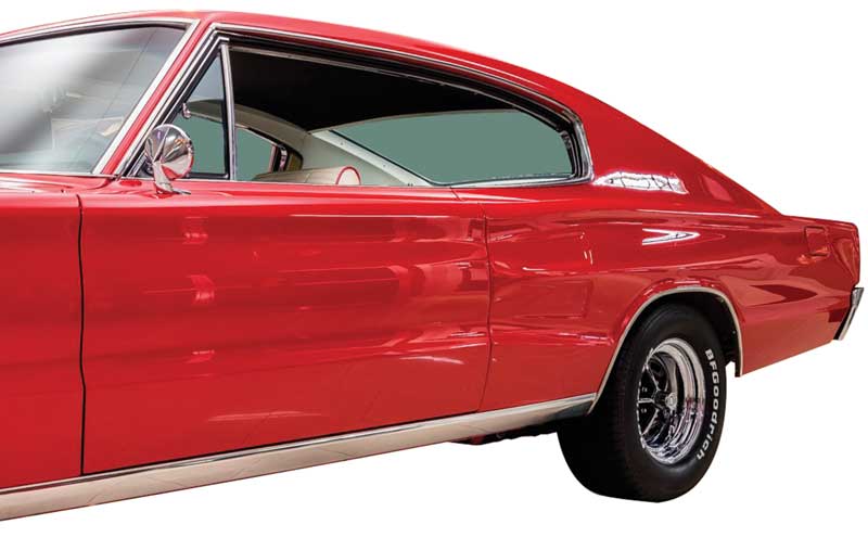 Reproduction of the original rocker panel moldings designed for use with 1966-67 Didge Charger and Coronet models. Each panel is manufactured in quality stamped aluminum replicating the original configuration and appearance. These factory-style replacement rocker panel moldings mount under the door and run from the front fender to the rear quarter panel. Features proper finish and contours to correctly replace the rocker moldings. Moldings measure 82-1/2" x 3-3/4". Includes RH and LH moldings. Sold in pairs.