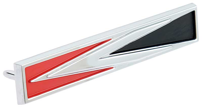 Authentic OER® die-cast reproduction of the original "Arrow" emblem designed for use on 1966-68 Dodge Charger models. Emblem features correct black, white, red fill and two push-on style mounting pins as original. Features correct part number and other casting marks molded into the rear of the emblem for an authentic cosmetic appearance. This is the 2-pin version for the quarter panels on 1966-67 Charger models and the headlamp door on 1968 models. Features 2 mounting pins as original. Mounting hardware is included. Sold individually.