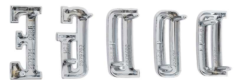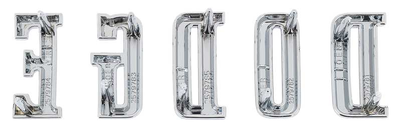 OER reproduction of the original "D-O-D-G-E" hood emblem letters for 1966 Dodge Coronet or Charger models. Each letter is manufactured in die-cast zinc as original, and chrome plated to offer an authentic replacement of the old, missing, broken, or pitted original emblems. Comes with mounting nuts for your convenience.