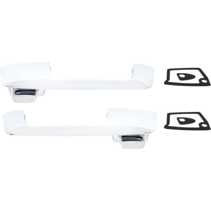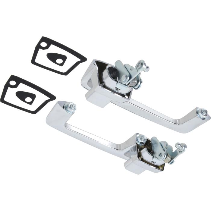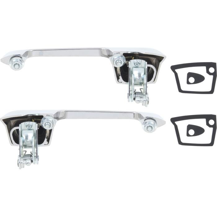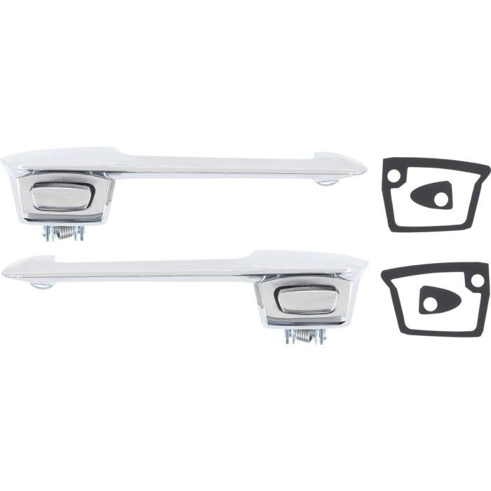Reproduction outer door handles for various 1967-70 Dodge and Plymouth models as listed below. Each door handle is manufactured in quality die-cast zinc featuring a polished chrome finish replicating the original in design, appearance, and fitment. Each set comes completely assembled and are ready to install. Features chrome handle with a chrome thumb-operated button.