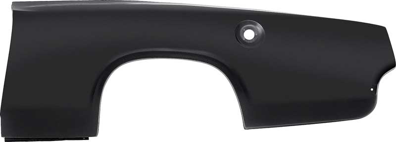 Reproduction of the original quarter panel skin designed for use with 1967 Plymouth Barracuda models. Each quarter skin panel is manufactured in stamped steel to original factory specifications featuring correct contours for an authentic appearance and fit. The partial quarter panel skin extends to the top crease of the original quarter panel and is die-cut so it extends to all mating surfaces including door jamb, wheelhouse, and tail light/valance panel area. The panel includes pre-cut opening for fuel cap in the correct location. Comes with black EDP coating for rust and corrosion prevention.