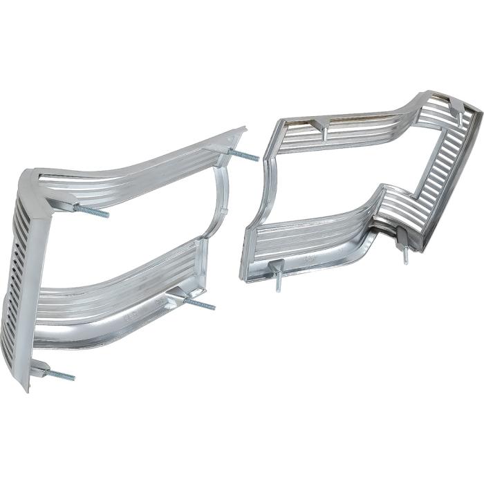 Reproduction tail lamp bezels for 1967 Plymouth GTX and Satellite models. Each tail light bezel is manufactured in zinc die-cast metal matching the original in design and fitment. Enhance the appearance of your classic by replacing pitted, damaged or missing original tail lamp bezels with these high quality factory-style reproductions. Features a silver painted inner section as pictured. Sold in pairs.