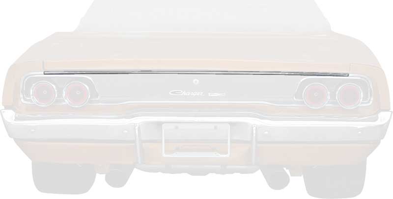 Reproduction of the original style trunk deck opening molding for use with 1968-69 Dodge Charger models. This stainless steel molding mounts to the rear of the deck lid opening and finishes off the the tail panel molding set.
