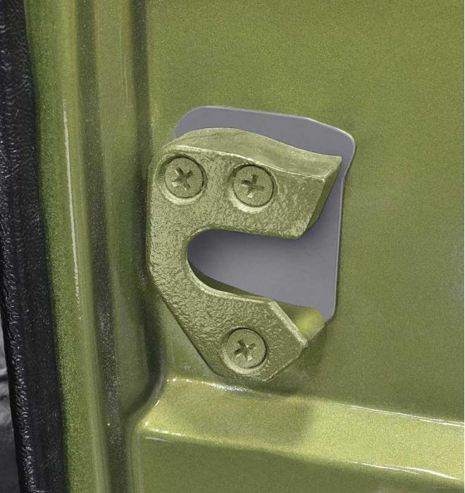 Correctly stamped reproduction of the original 1968-70 striker shim plate designed for use on B-Body models. Manufactured in die-stamped steel with zinc plating for corrosion resistance. Designed to shim the door striker catch to the correct thickness. Use as required.