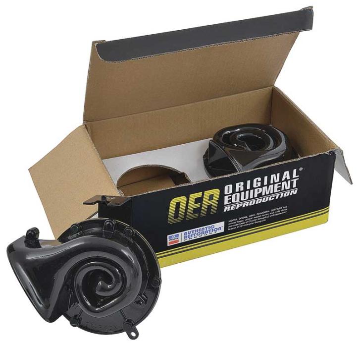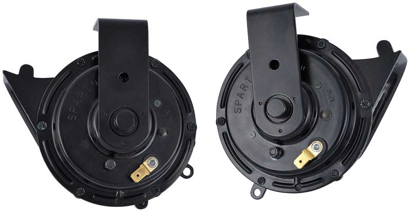 Correct OER® reproduction of the Sparton horns designed for various 1968-74 Mopar models. Each horn is designed with the Dodge and Plymouth "folded horn" design for proper sound and correct pitch. Manufactured to factory specifications featuring OEM markings and the "Sparton" logo as original. Sold as a pair with Hi & Lo horns. There were two different versions of horns that were offered during these years. Prestolite which features an adjustable style horn bracket and Sparton, which features a fixed style horn bracket. This is the Sparton style horns. NOTE: Mounting may vary from original on some models. Not for use with 1972-74 Plymouth Road Runner and Dodge Charger models.