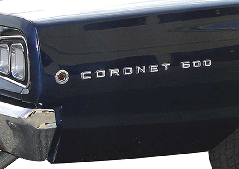 OER reproduction of the original "CORONET" quarter panel emblem letters for use with 1968 Dodge Coronet, Coronet 440, and Coronet 500 models (Except wagon). Each letter is manufactured in quality die-cast zinc, chrome plated, featuring white accents as original. Comes complete with mounting nuts for easy installation. Manufactured with correct markings on the back of each emblem for complete authenticity. 2 sets required per vehicle. Refer to part number # RM4139 for 1968 "500" quarter panel emblem. Note: Not for use with station wagon models.