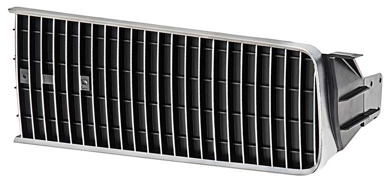 OER reproduction of the LH driver side 1968 Charger headlamp door assembly. Each door is manufactured in a high pressure injection molding process just like the factory Mopar item. Injection molded in black, each door is masked and sprayed with the correct shade of Argent Silver in the appropriate accent areas. Each door comes with hardware for installation on the grill extension for your convenience.