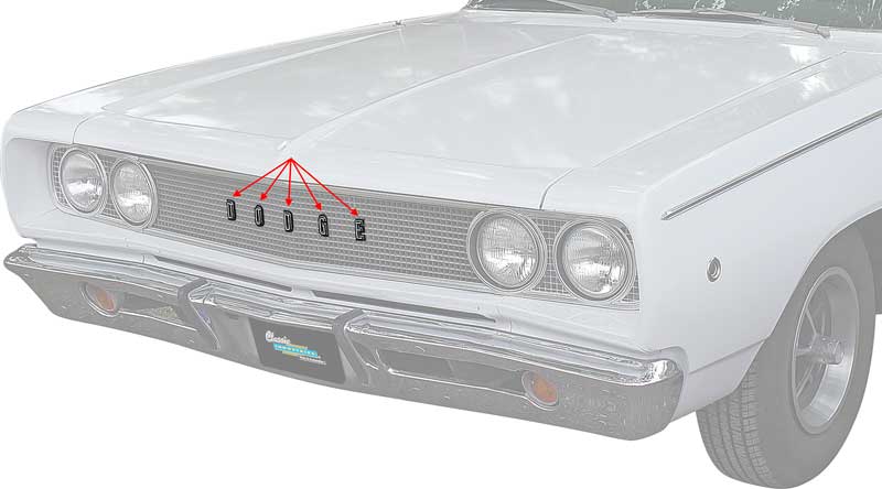 OER 1968 Dodge Coronet, DODGE Grill Emblem, 5 Letter Set, Mopar Licensed RM4230