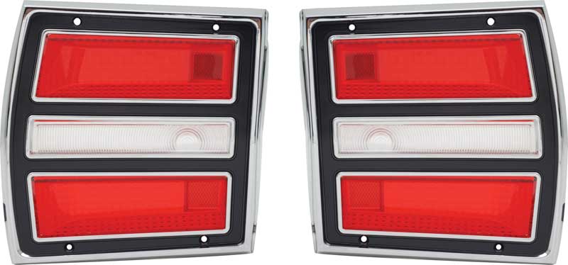 Reproduction tail lamp and back up light assemblies for 1968 Dodge Dart models. Each tail lamp assembly set is manufactured as original including the correct tail lamp housing, die-cast chrome bezels, and injection molded acrylic lens. Sold in pairs. Includes RH and LH tail lamp assemblies.