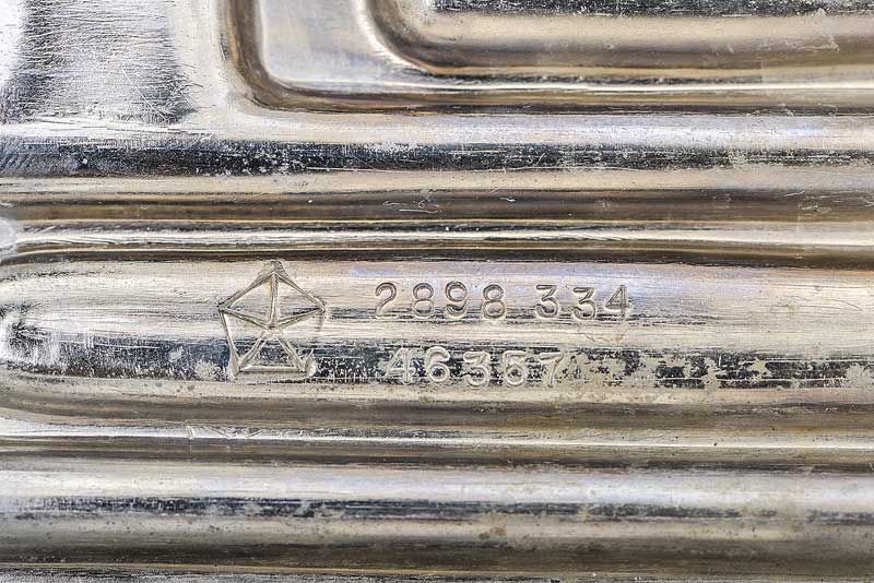 Painstakingly crafted with all of the correct casting numbers. Each ornament Includes the Pentastar symbol molded into the rear of the emblem. Ornaments are chrome plated, highly polished, then painted with the correct argent silver, black accents, and red numerals as original. Mounting hardware is included with each emblem for installation.