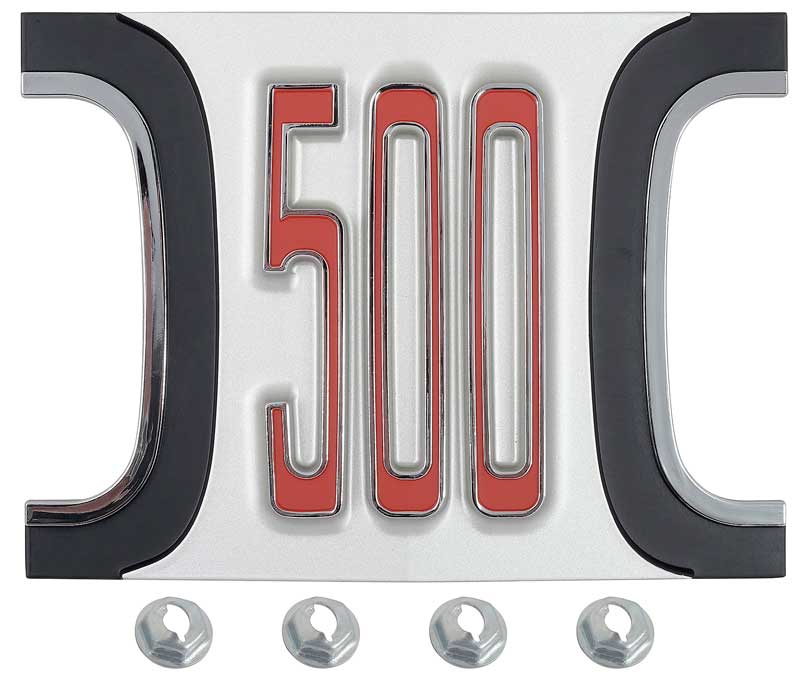OER reproduction of the original 1969 Coronet 500 grill ornament emblem. This zinc die-cast metal ornament mounts in the center of the front grill (OER part 2898872) to designate your Coronet as the premium trim level Coronet for 1969 models.