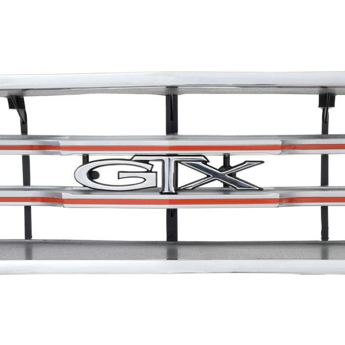 Reproduction grill emblem for 1969 Plymouth GTX models. Painstakingly reproduced to factory specifications featuring highly polished chrome plating, and the correct flat black accent paint. Each emblem features authentic Pentastar markings and original casting numbers on the rear of the emblem just like the factory item. Officially licensed Mopar Authentic Restoration Product. Mounting hardware is included for your convenience.