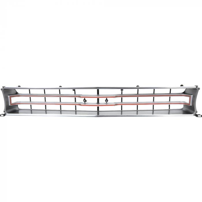 Each center grill is produced with the correct upper and lower trim molding pre-installed on the grill for your convenience. 8 anodized steel studs/spacers come preinstalled on the grill just like the original Mopar item. Emblems are not included with grill, and are sold separately. Officially licensed Mopar Authentic Restoration Product.