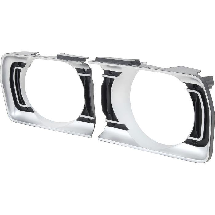 Each headlight bezel is manufactured in black injection-molded ABS plastic, and finished in argent silver in the accent areas same as factory original. Features correct Pentastar markings in the proper locations for authenticity.