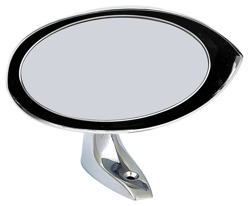 Quality reproduction of the original manual style "Bullet" outer door mirror designed for use with 1970-73 Dodge Dart, Dart Sport, and Plymouth Duster, Demon, Valiant, and Scamp models. Each mirror is manufactured in die-cast zinc featuring a bright chrome plated finish replicating the original mirror is design, appearance, and fitment. For use with models originally equipped with bullet mirrors. Includes mirror gasket and mounting hardware.