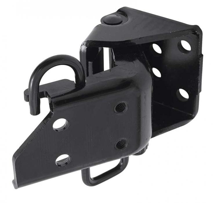 Reproduction lower door hinge for 1970-74 Dodge, Plymouth E-Body, Barracuda, 'Cuda, and Challenger models. Manufactured in quality stamped steel replicating the original in quality and design. Features correct mounting holes and configuration. The doors of 1970-74 E-body models were extremely heavy and hard on the hinges causing them to wear out prematurely. Installing this new replacement hinge will allow your door to work properly and open and close the way the factory originally intended. This is the lower hinge for the LH driver side door.