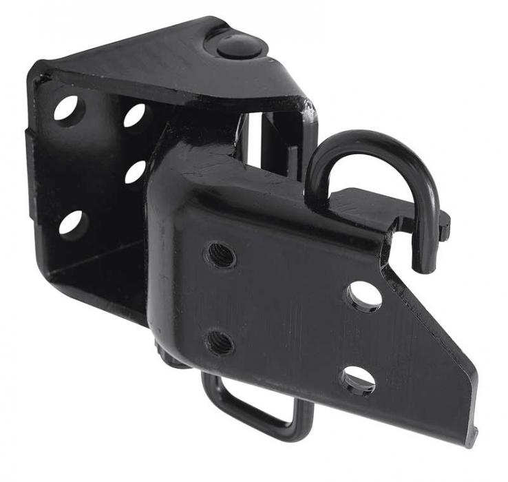 Reproduction lower door hinge for 1970-74 Dodge, Plymouth E-Body, Barracuda, 'Cuda, and Challenger models. Manufactured in quality stamped steel replicating the original in quality and design. Features correct mounting holes and configuration. The doors of 1970-74 E-body models were extremely heavy and hard on the hinges causing them to wear out prematurely. Installing this new replacement hinge will allow your door to work properly and open and close the way the factory originally intended. This is the lower hinge for the RH passenger side door.