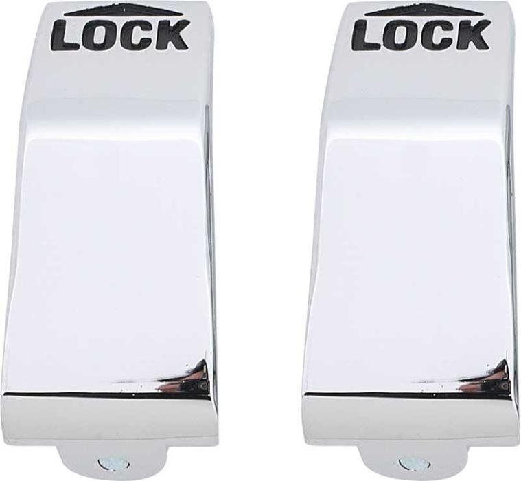 Reproduction of the original door lock levers for use in 1970-74 Barracuda, Cuda, and Challanger models. Each lever is manufactured in quality die-cast zinc and chrome plated replicating the original door lock lever in quality, appearance, and fitment. These levers feature the word "Lock" in the correct font and an arrow insignia to indicate which way to push the lever in order to lock the door. Sold in pairs. Each set includes mounting bolts. Replaces original Mopar part number # 2999950