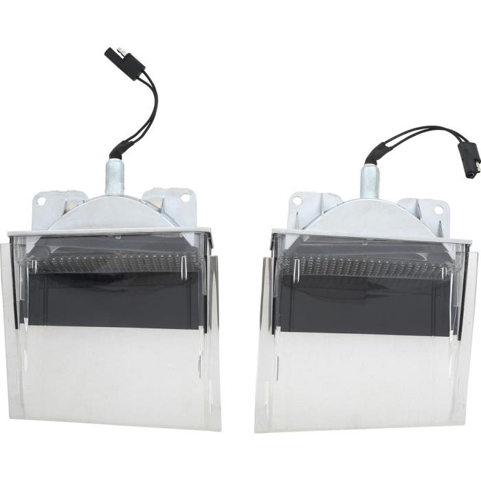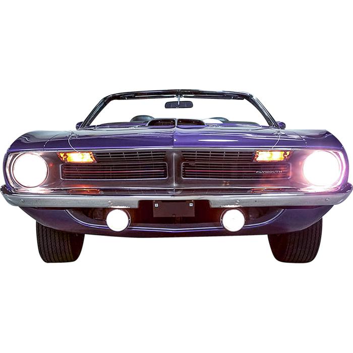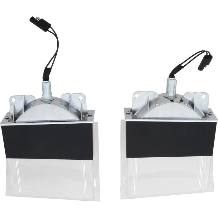 Reproduction park lamp assemblies for 1970 Plymouth Barracuda and Cuda models. Each park lamp assembly is manufactured to factory specifications replicating the original in materials and design. The housing is manufactured in die-cast zinc featuring a highly reflective finish on the interior of the housing. Also includes a correct amber 1157 combination park lamp and turn signal bulb. Each lens is manufactured in injection molded clear acrylic replicating the original appearance. Will fit and install same as the original. Comes complete with park lamp housings, park lamp to lens gaskets, wiring, lenses, pigtail, and bulb. Ready to install. Includes RH and LH park lamp assemblies. Sold in pairs.
