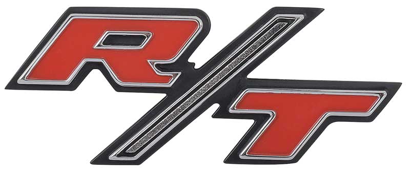 Reproduction R/T emblem for 1970 Dodge Charger R/T models. Each emblem is manufactured in quality die-cast zinc replicating the original emblem in every detail. Includes correct color red with black design replicating the original appearance. Emblems include all original Chrysler markings, part numbers and pentastar insignias on the back of the emblem offering complete originality and authenticity. Mounting hardware included. Emblem is designed to be spin welded to the rear panel.