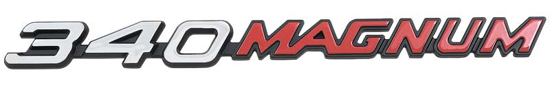 Authentic OER® reproduction of the original 340 Magnum hood emblem designed for use with 1971-73 Dodge Charger models. Manufactured in quality die-cast zinc replicating the original in quality and design. Installs on each side of the hood of 1971-73 Charger models. Features correct font and finish for an authentic appearance. Sold individually. Measures approximately 10.5" in length. Includes mounting hardware.