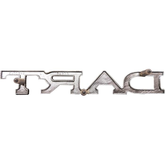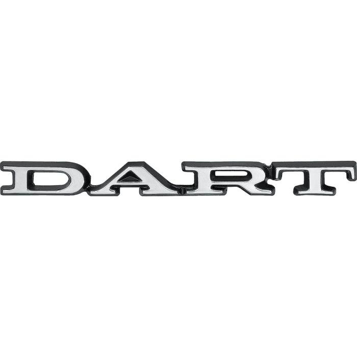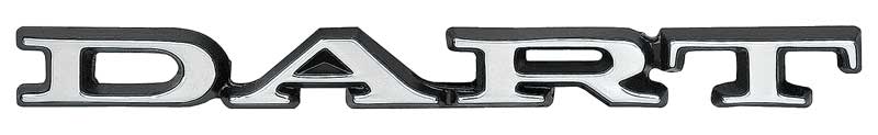 Authentic reproduction of the original "Dart" front fender and rear trunk lid emblem designed for use on 1971-74 Dodge Dart vehicles. Each emblem is designed and manufactured in die-cast zinc metal to exact specifications including correct brushed chrome face with black border. Also includes correct mounting pins for installation. Emblem includes all original markings on the back of the each emblem offering complete originality and authenticity. Mounting hardware included. Sold individually. 2 required per vehicle.