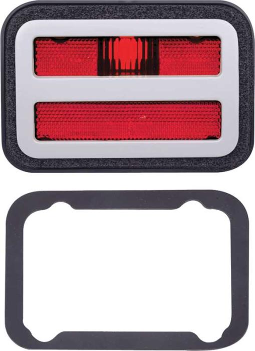 Reproduction of the original front side marker lamp assembly designed for use with 1971 Dodge Charger, R/T Super Bee, 500, base, and Special Edition models. Each side marker lamp is manufactured to exact factory specifications and includes the red lens, housing, gaskets, side marker bezel, and mounting nuts. Completely ready to install. For use on RH or LH front fenders. Sold individually.