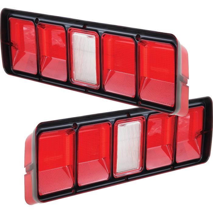 Correct reproduction tail lamp lenses for 1971 Plymouth Road Runner and GTX models. Each tail lamp lens is manufactured in quality injection molded acrylic replicating the original in design, appearance, and fitment. Designed to replace the damaged or cracked originals. Features correct black trim wiith back up lens. Includes RH and LH lens. Sold in pairs. Gaskets available separately.