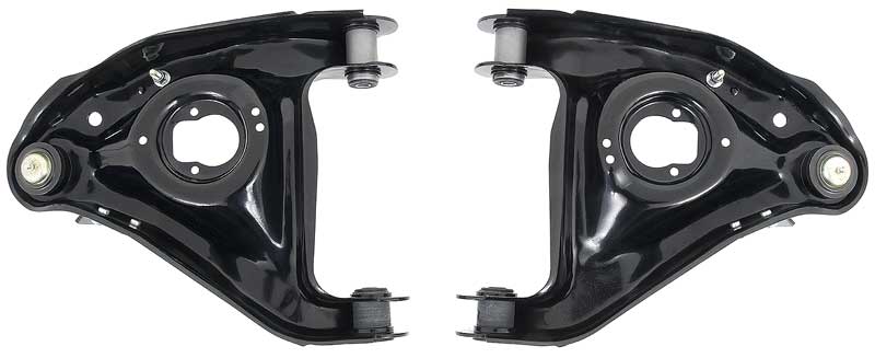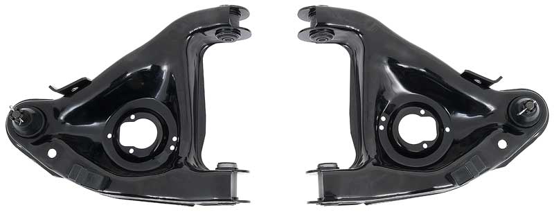 Reproduction lower control arms for various 1978-87 GM vehicles including 1978-87 Buick Regal, Grand National, Type T, and GNX models. Each control arm is manufactured from heavy duty steel and built to exact factory specifications, ensuring proper strength, geometry, and suspension function. Finished in a durable black powdercoating for an authentic OE appearance, these control arms arrive fully assembled with cross shafts, bushings, and ball joints pre installed.