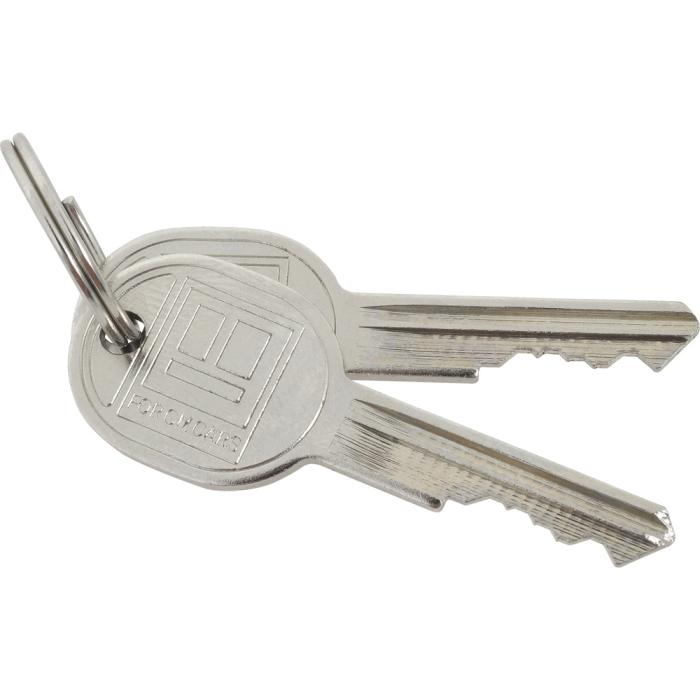 Reproduction door lock cylinders for various 1961-87 Buick, Cadillac, Chevrolet, Pontiac, and Oldsmobile models as listed. Includes two door lock cylinders with black face finish, two generic logo keys, cylinder retainers, and gaskets for a complete replacement. NOTE: Check lock pawl shaft length on your original door lock before ordering, this lock features the short style shaft.