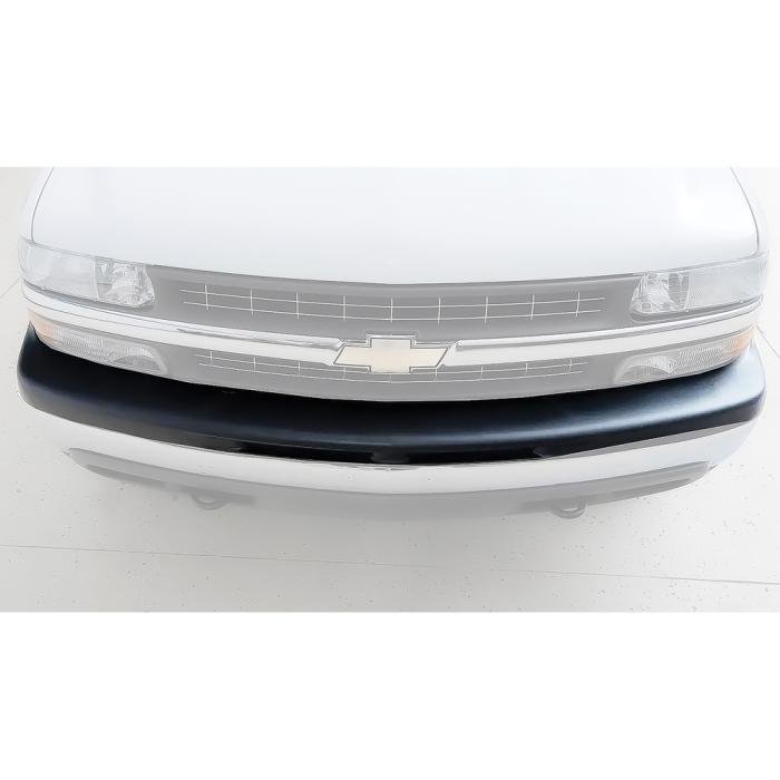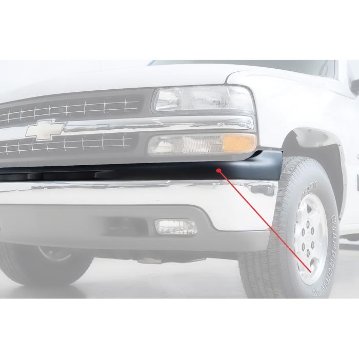 Reproduction front bumper trim cap for 1999-2002 Chevrolet Silverado 1/2 and 3/4 ton truck (Exc. HD) and 2000-06 Tahoe/Suburban models. Manufactured in injection-molded plastic replicating the original in design and fitment. Replace your damaged original front bumper trim with this quality reproduction. Fits 1999-02 Chevrolet Silverado 1500 & 2500 (exc. HD models with the 2" body lift) and 2000-06 Tahoe and Suburban.