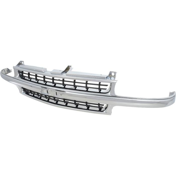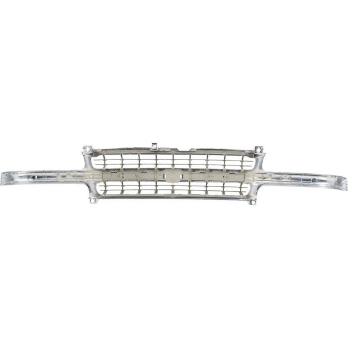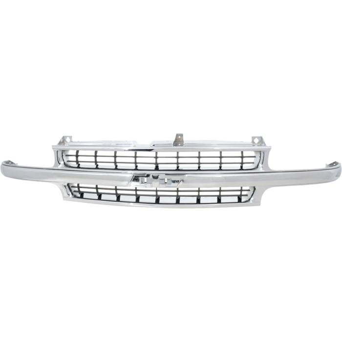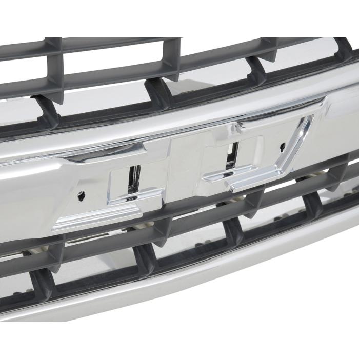Reproduction chrome plastic grill for various Chevrolet Truck models. Each grill is a duplicate of the original style chrome grill for 2000-2006 Suburban and Tahoe. But will install on 1999-02 Silverado for a custom appearance. Features chrome plating with correct Bow Tie emblem mounting holes as original.