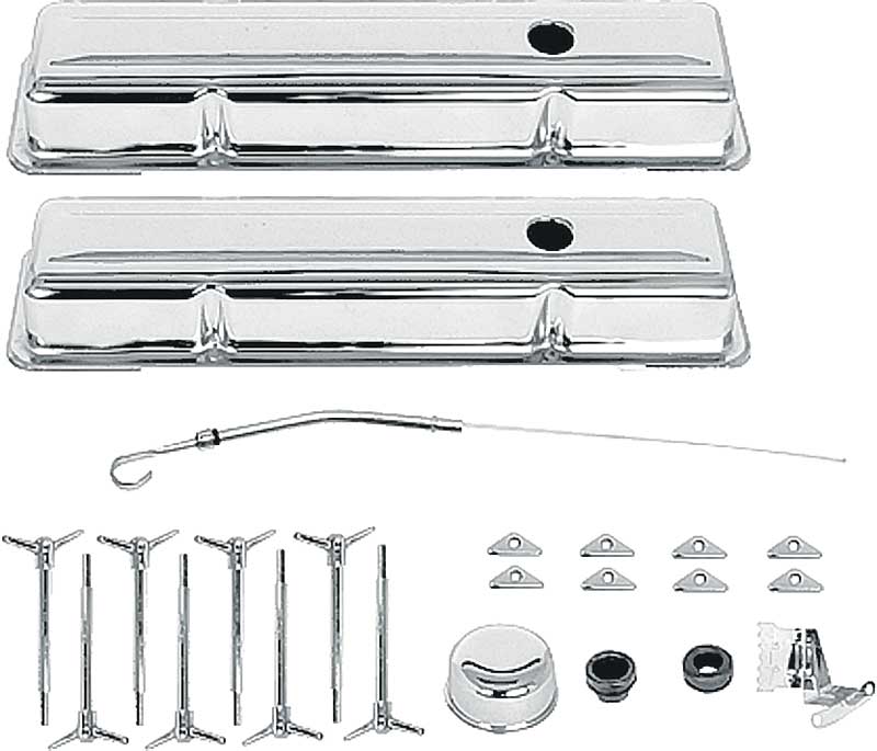 Dress up your Chevrolet small block V8 engine in brilliant show quality polished chrome with this engine dress up set. Includes the basic components needed to make your engines appearance shine! Features low profile valve covers. Will fit Chevrolet 262 to 400ci small block engines.