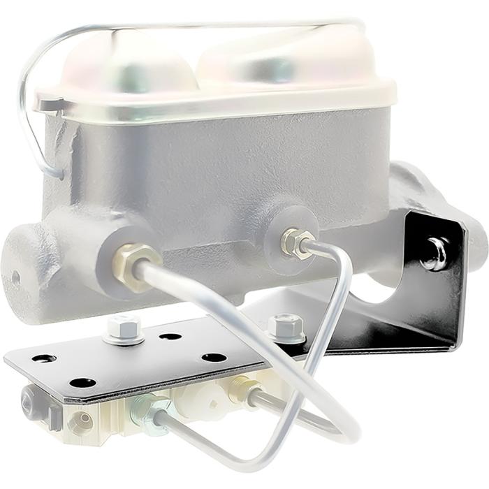 Universal fit proportioning valve/combination valve mounting brackets mount your combination valves either to the frame or directly under the master cylinder, providing access to lines and fittings. Each stamped steel bracket is chrome plated for superior corrosion resistance.