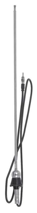 Aftermarket replacement antenna features a telescopic mast that can be manually retracted in order to prevent it from being broken off or bent by low hanging branches, or bushes. This antenna mast is designed for mounting on top of fender. Will fit almost any vehicle with slight modifications. Includes a 4 section mast, 1.38" base, 47" cable, 34" extended length, 9" from bottom of base to bottom of antenna. May require modification to vehicle for installation.